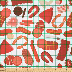 Cristo Appetizing Yummy Farm Meat and Sausages with Beef Steaks Pork Ribs and Ham Multi-Purpose Fabric - Orange (300cm L X 148cm W)