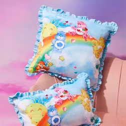 Shein Cute Rainbow & Bear Pattern Soft And Comfortable Ruffle Pillowcase 1PC Pillow Case Blue
