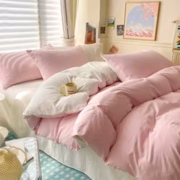 Shein 3pcs Light Creamy White Bedding Duvet Cover Pink