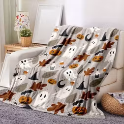 SHEIN Cozy Flannel Halloween Throw Blanket - Cute & Funny Ghost Design , Soft Polyester For Sofa, Bedroom Decor | Perfect Gift For Friends And Classmates