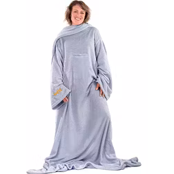 Snug Rug Lilac Grey DELUXE Blanket With Sleeves GENUINE SnugRug Sleeved Blankets 260gsm Luxury Cosy Super Soft Coral Fleece Soft Fabric Long Oversized Sleeves & Pouch Pocket Adults Size