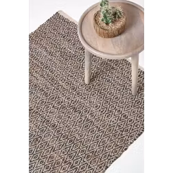 (150 x 240 cm, Brown) Real Leather Handwoven Diamond Pattern Rug
