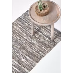 (66 x 200 cm, Grey) Denver Leather Woven Rug