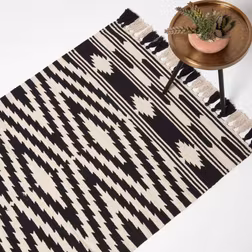 Woven, Handmade, Cotton, Wool, White, Black