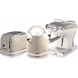 Vintage Cream 1.7L Dome Kettle, 2 Slice Toaster and Espresso Coffee Machine - Cream - Yellow