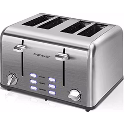 Aigostar Stainless Steel Toaster 4 Slice, Independent and Extra-Wide Slots, Defrost & Reheat Functions, 1550W Electric Toaster with High Lifting,