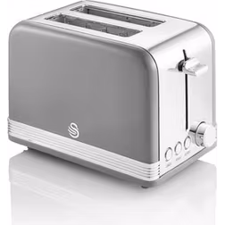 Swan St19010Grn Retro 2-Slice Toaster With Defrost/Reheat/Cancel Functions, Cord Storage, 815W, Grey