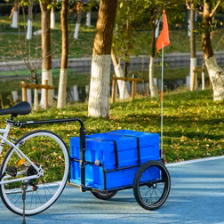 HOMCOM Bicycle Trailer With Foldable Storage Box And Pneumatic Tyres, Blue, Blue