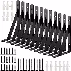 12 Pack Shelf Bracket Heavy Duty, 6 inch Triangle Wall Right Angle Shelf Brackets, Black Shelf Supporter for Show Shelves, Kitchen, Bedroom