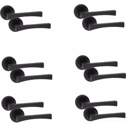 6 Pairs Wave Design Door Handles Latch on Round Rose in Matt Black Finish - 52mm Diameter - Matte Black (9cm W)