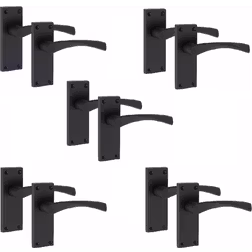 5 Pairs Victorian Scroll Astrid Door Handles Latch in Matt Black Finish - 120mm x 40mm Backplate - Matte Black (14cm W)