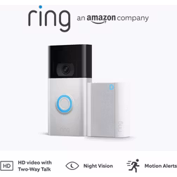 Ring Satin Nickel, Ring Chime Video Doorbell 2Nd Gen by Amazon Wireless Video Doorbell Security Camera with 1080P HD Video