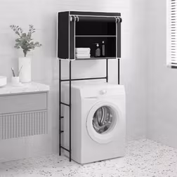 (black) vidaXL 2-Tier Storage Rack over Laundry Machine Storage Shelf Organiser Iron
