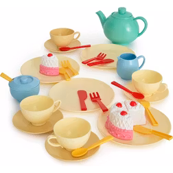 Casdon 33-Piece Tea Set. Colourful Toy Playset with Teapot, Milk Jug, Cups and Saucers, Cake, and More. Suitable for Preschool Toys. Playset for Children Aged 3+, New Colourway