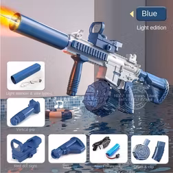 (M416 blue light) Fully Automatic Electric Water Gun with Flame Light Rechargeable Continuous