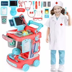 SHEIN Multi-Purpose Doctors Trolley Set For Kids Medical Centr Playsets Medical Tools Role Play Toy Educational Doctor Playset (Include Doctor Costume)