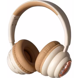 (Beige) Headphones th RGB Lights Wired Wireless Headset